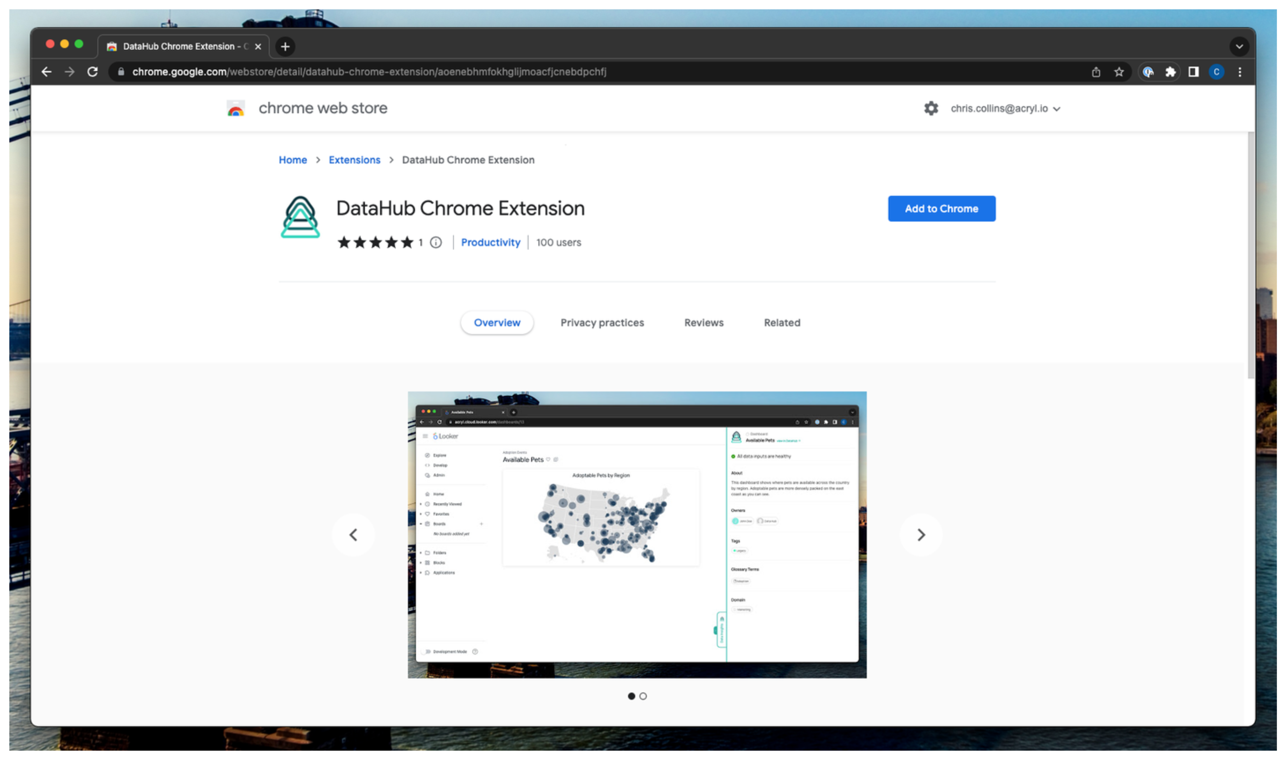 In order to use the Acryl DataHub Chrome extension, you need to download it onto your browser from the Chrome web store here.